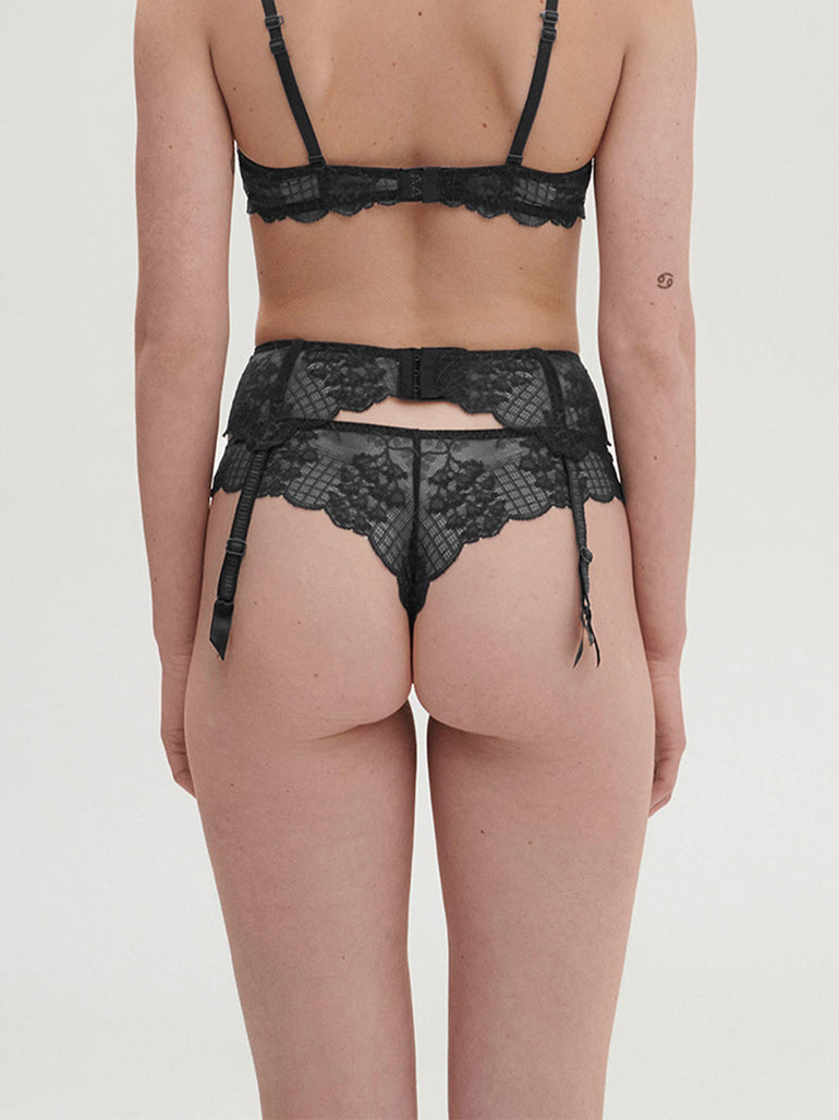 Une dentelle raffinée où les fleurs se mélangent à une modernité graphique. Elégante et féminine.