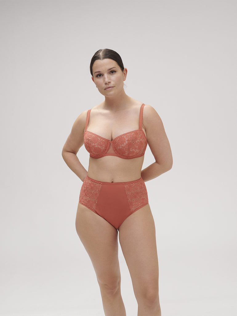 Soutien-gorge corbeille avec armatures en broderie composée à 100% de polyester recyclé.