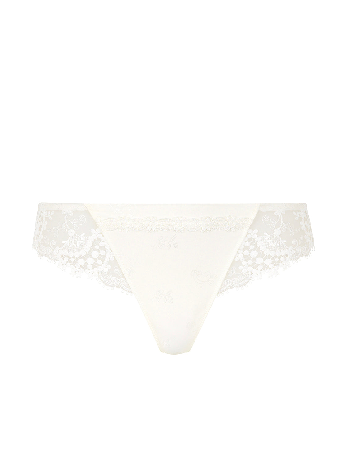 Ligne délicate en broderie florale et guipure. Raffinée et sophistiquée.
